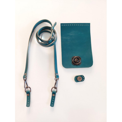 Gerçek Deri Turkuaz Renk Füme Metalli Sap Kapak Seti